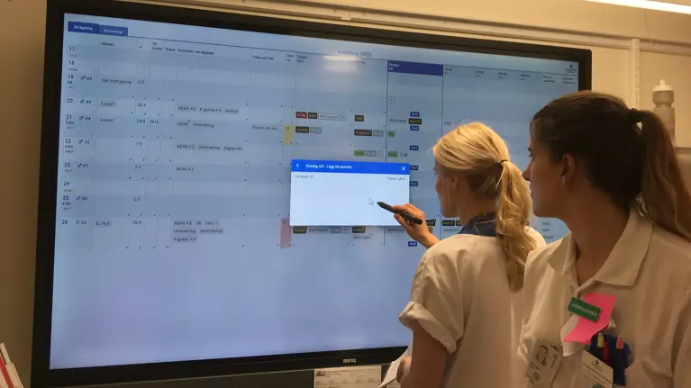Alla uppdateringar som görs under dagen gällande en befintlig patient matas in direkt på tavlans touchskärm, personalen bockar av arbetsuppgifter eller sätter upp nya digitala magneter vartefter dagens arbetsuppgifter utförs. Alla får samma information momentant, oavsett var man befinner sig. Den digitala tavlan innebär en otrolig lättnad jämfört med den analoga whiteboard som användes tidigare, undersköterskor och sjuksköterskor har fått ett helt nytt kommunikationsverktyg, man behöver inte lägga lika mycket tid på överlämning och inläsning, man får en tydlig överblick över arbetsdagen och en automatisk bild av nuläget.
